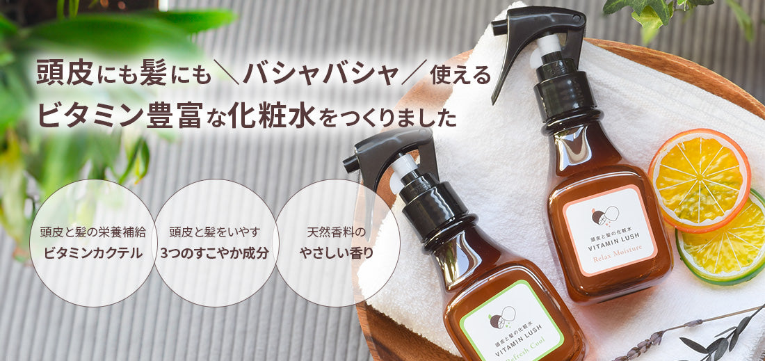 ビタミンラッシュは頭皮にも髪にも使える、保湿力と香りにこだわった化粧水。30代からの大人髪の悩みにアプローチします。頭皮に化粧水をつけて保湿することで乾燥頭皮を潤せば、過剰に分泌されている皮脂も減り、髪を健やかに育てる土壌が整います。乾燥した髪にも使え、ぱさつきも抑えられます。自分が欲しかったアイテムを、厳選した成分を配合してこだわって開発しました。ぜひお試しください。
